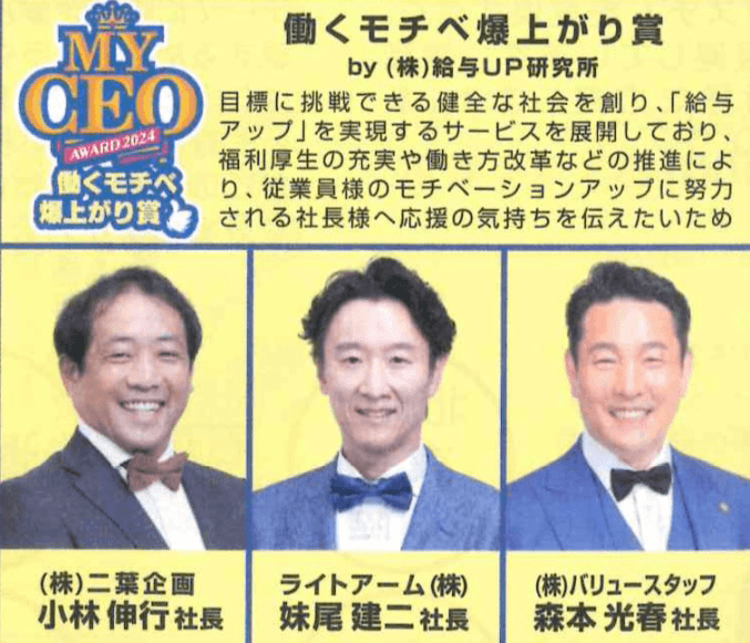 MY CEO AWARD 2024の中から特別賞『働くモチベ爆上がり賞』も受賞させていただきました。