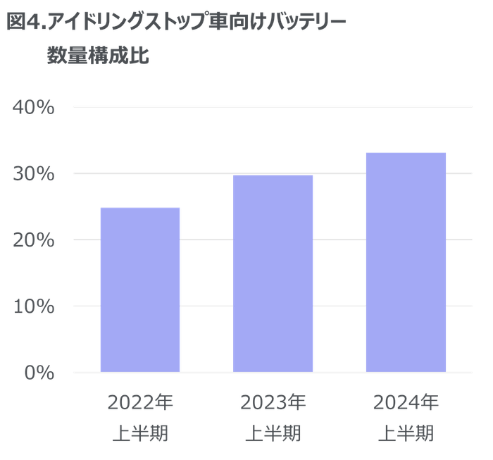 ・ アイドリングストップ車向けバッテリーの拡大が見られ、数量構成比は33%に達した。