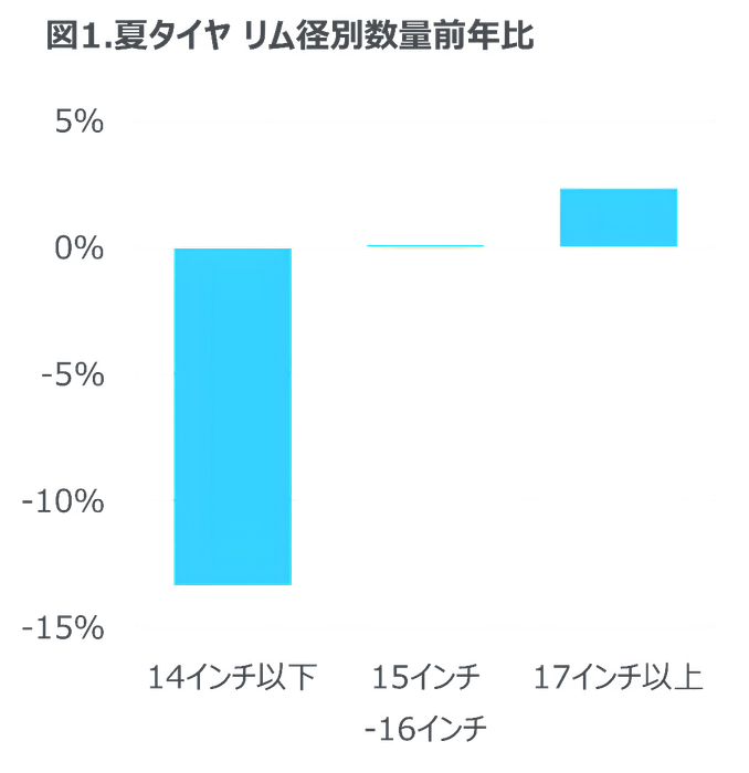 ・ 夏タイヤ全体では数量前年比5%減と落ち込んだが、17インチ以上では同2%増と前年を超えた。