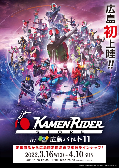 広島ホームテレビは、広島バルト11と「仮面ライダーストア in 広島バルト11」を期間限定で、3月16日(水)から4月10日(日)まで開催いたします。