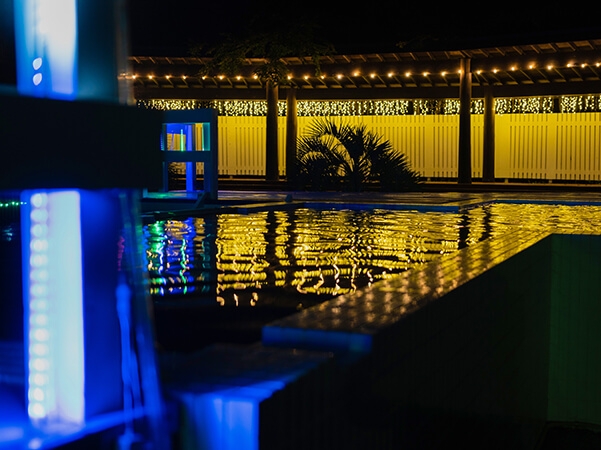 また、プールエリアは現在冬季限定のイルミネーションを設置しています。