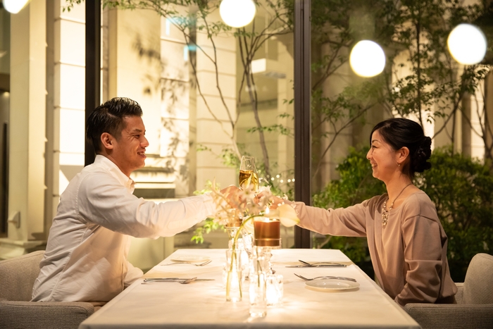 2015年よりサービスを開始し、現在では年間約500組の婚約をプロデュースする<最高のプロポーズ>、2022年4月より開始したご夫婦のお祝い<最高の結婚記念日>に加え、このたび新たに「入籍」をお祝いする<最高の入籍記念日>プランが誕生。「婚姻届をふたりで提出して、入籍日は特別な過ごし方をしたい」というカップルに向けた、レストランでの会食と、プロカメラマンによる入籍記念フォトがセットになった特別プランです。婚姻届を持った記念写真、婚姻届と結婚指輪の写真など、SNS上でもよく見る定番写真はもちろん、ふたりで婚姻届を記入しているシーンなど、プロカメラマンならではの写真も残すことができます。さらに東京都・赤坂のフラワーショップ「SPIM Flower&Decoration(スピン フラワー&デコレーション)」のプリザーブドフラワーや、入籍記念日の数字を模したパティシエ特製「ナンバーケーキ」をお持ち帰りいただけるので、ご自宅に帰ってからも特別なひとときをお過ごしいただけます。