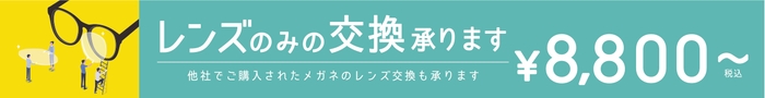 遠近両用、超薄型単焦点レンズが2枚1組 税込¥8,800より、他社でご購入のメガネのレンズのみの交換も承りますので、どうぞお気軽に近くのお店にご来店ください。