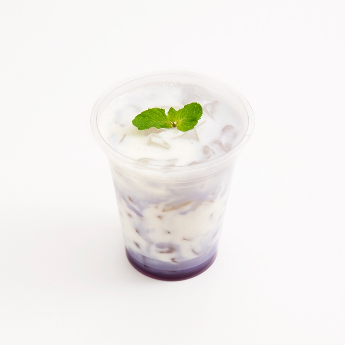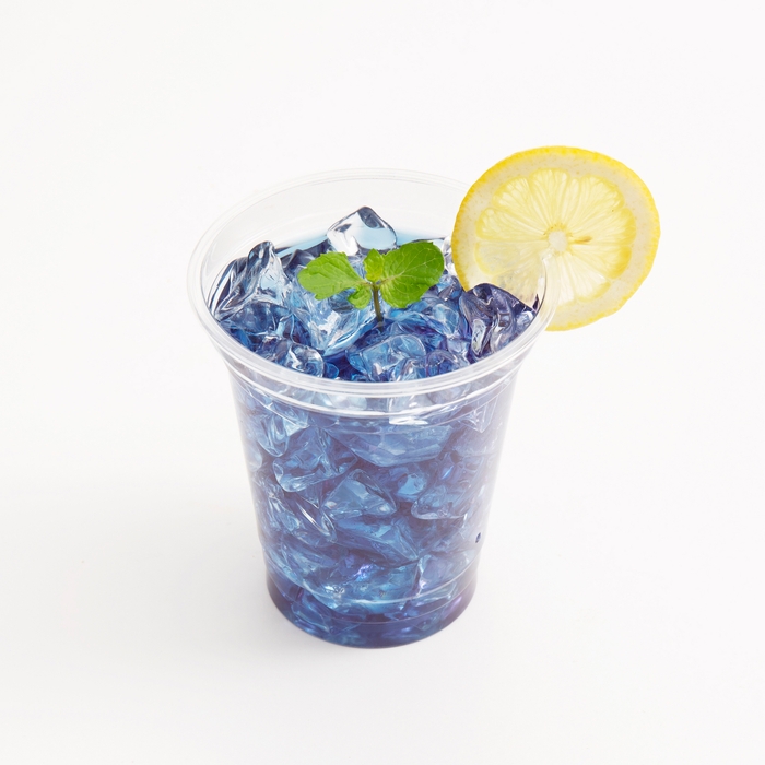 バタフライピーのシロップでタバコの煙をイメージしたドリンク。