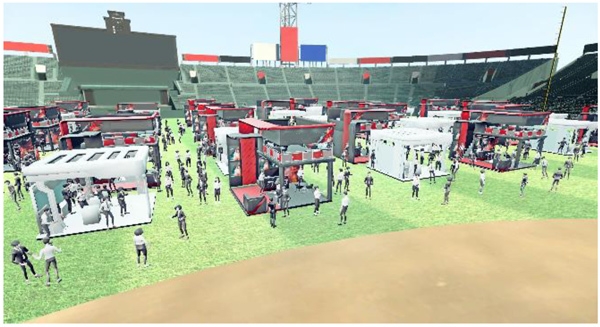 本展示会では、出展者と来場者は、オンラインゲームのようにアバターを通じて参加していただきます。双方向の音声通話などが可能で、実際の阪神甲子園球場のグラウンドで商談を行っているような臨場感を体感することができます。