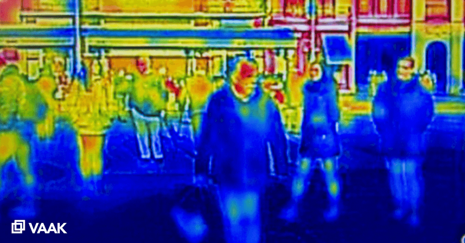 「VAAKEYE+」は、防犯カメラ映像およびサーモグラフィー映像を解析し、発熱や咳などの症状、人が密集している状態、近距離での会話や発声が行われる状態(密接)、マスクの有無、ドアノブなどへの不特定多数の接触、設備の消毒有無といった人物や設備の状態を検知し、「飛沫感染」及び「接触感染」などの感染リスクを通知します。