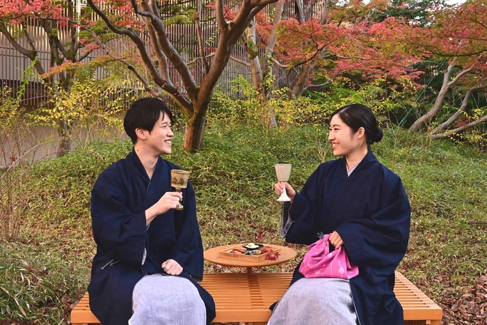界 鬼怒川の中庭では、季節によって様々な景色を楽しむことができます。中でも一番の見ごろは秋の紅葉シーズン。日中は鮮やかな紅葉を、夕暮れ時はライトアップされた幻想的な紅葉を堪能できます。この素敵な中庭で、大切な人と特別な湯上がり時間を過ごしていただきたいという思いから当イベントの開催に至りました。