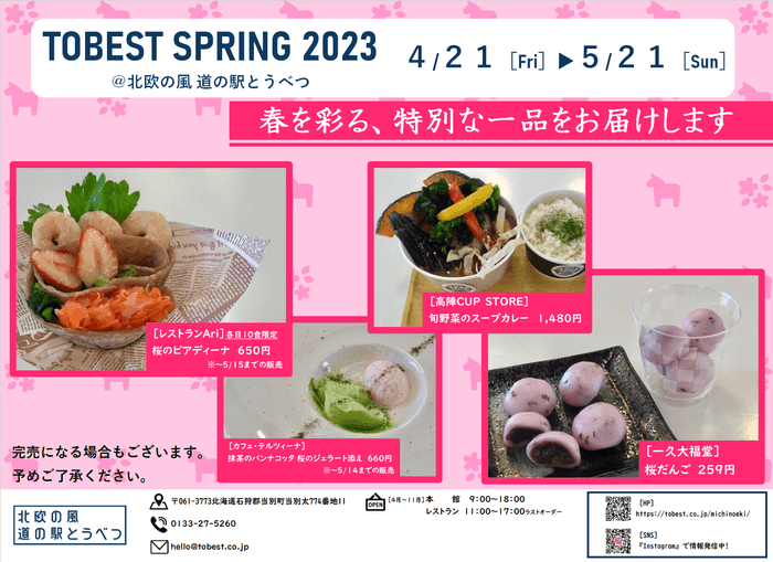 北欧の風 道の駅とうべつでは、2023年4月21日(金)より『TOBEST SPRING 2023(トーベスト スプリング)』を開催致します。