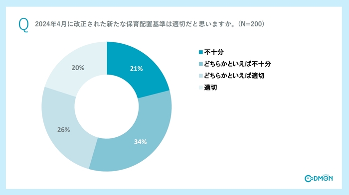 〈76年ぶりの改定から1年 保育士配置基準の実態調査〉 8割が新基準に対応も、半数以上が「不十分」の声 現場職員が適切だと思う配置人数と約10人の乖離 ~配置基準対応への課題は「人手不足」 非資格保有者の採用で賄う施設も~ | NEWSCAST