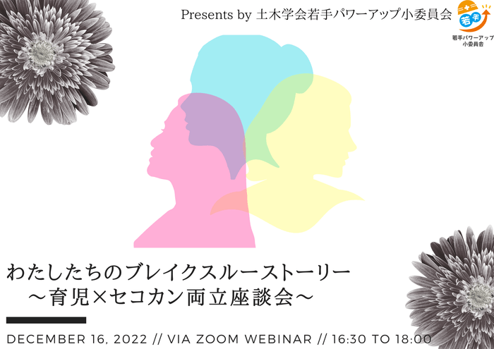 公益社団法人土木学会(会長 上田 多門)は、子育てとゼネコンの施工管理の仕事の両立に関するトークイベント、「わたしたちのブレイクスルーストーリー~育児×セコカン両立座談会~」を開催します。