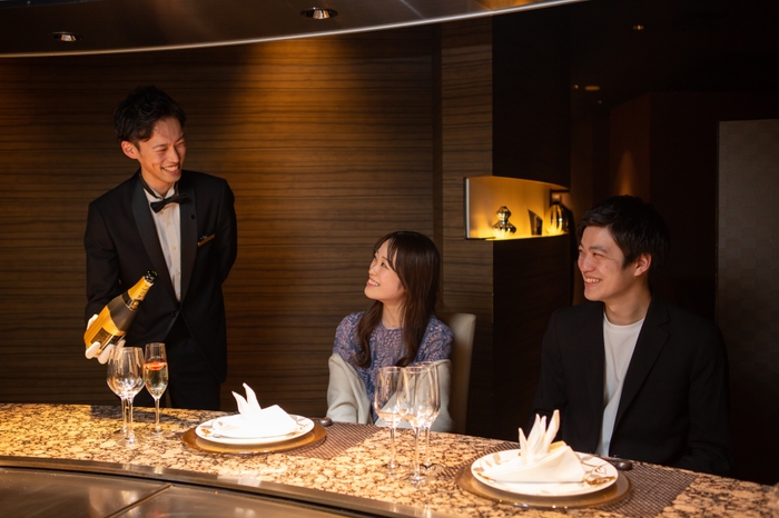 鉄板焼レストランで専用のプロポーズディナーをご堪能後、プロポーズケーキをご用意しプロポーズを演出します。