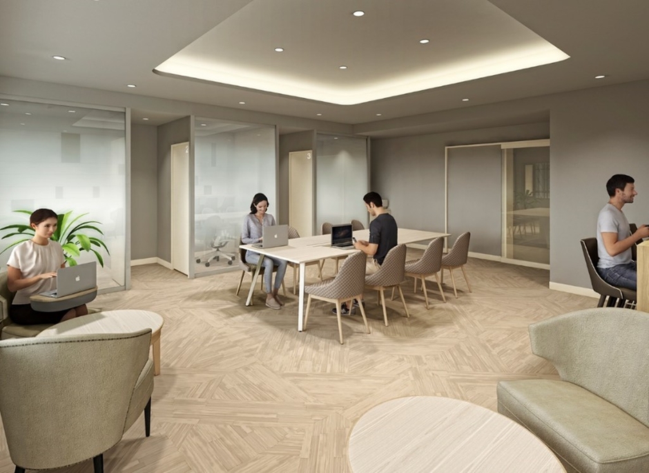 多様化するワークスタイルに対応する 個室ブースを備えたテレワークラウンジ完備