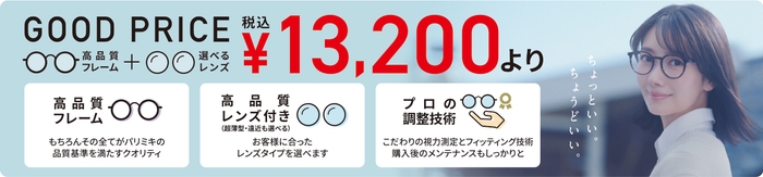 レンズ付 メガネ1組 税込¥13,200~、さらに見やすくなった遠近両用レンズをはじめ、パソコン・スマホなど比較的近くの距離が見やすい中近両用レンズ・近々両用レンズも追加料金なしで選べます。