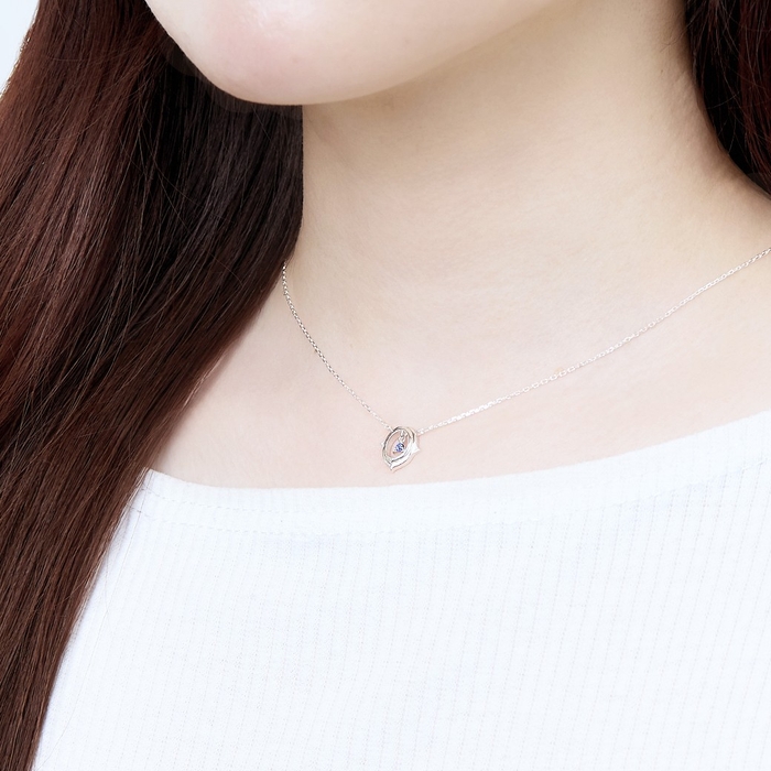 ループタイをモチーフに取り込んだオーバル型のデザイン。中心で揺れる鱗紋のチャームにはイメージカラーストーンをセットしました。