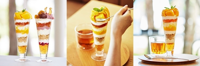 実りの秋を満喫する「紅いもモンブランパフェ」「マンゴーオレンジパフェ」
