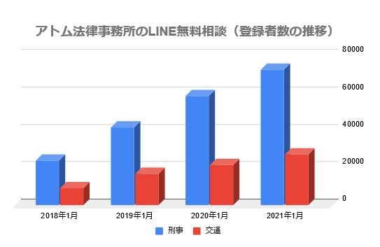 2021年1月5日、アトム法律事務所が運営するLINE相談「事故の無料相談byアトム弁護士」と「刑事事件の無料相談byアトム弁護士」の友だち登録者数が合計10万人を突破しました!