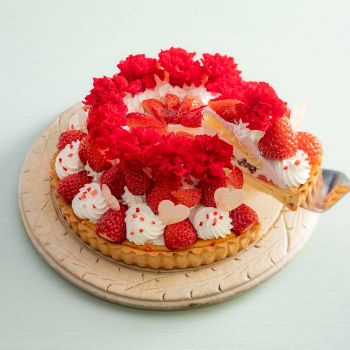 食べられるカーネーションで飾った、花束のような華やかなタルトが、母の日までの9日間で限定販売します。