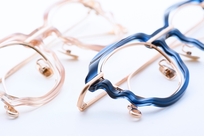 コンセプトは“掛けることで女性らしさが引き立つアイウェア”。装いに華やぎを添えるアクセサリーのように、女性の表情に違和感なく溶けこむ、シンプルで柔らかなレンズシェイプと、スワロフスキーや七宝を贅沢にあしらった装飾とが見事に調和した美しいアイウェアです。