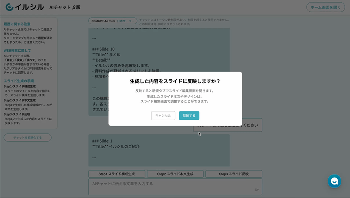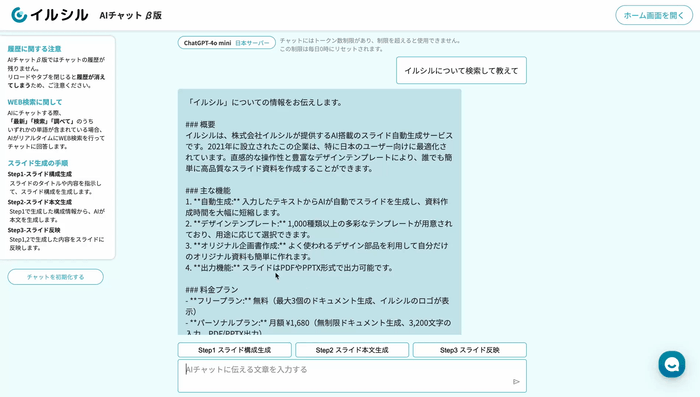 「イルシル」サービス内でAIとのチャットからスライドをAI生成できる機能を追加しました。