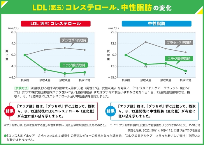 LDL(悪玉)コレステロールと中性脂肪をまとめてケアできる エラグ酸含有の青汁とタブレットが新登場!