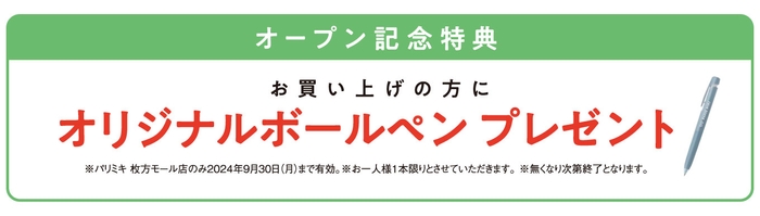 オープンを記念し、期間中お買い上げの方に「ロゴ入りボールペン」をプレゼント!