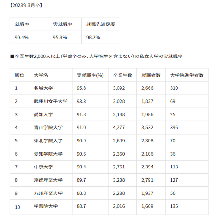 【名城大学】大規模私大 実就職率ランキング 13年連続 全国No.1 | NEWSCAST