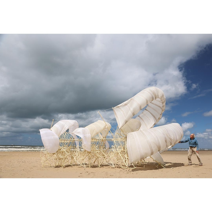 テオ・ヤンセンは、いわゆるストランドビーストと呼ばれる新しい生命体の創造に取り組んでいる。黄色いプラスチックチューブ(オランダの電気パイプ)で作られた骨格は歩くことができ、風からエネルギーを得ている。彼らは1990年の誕生以来進化を続け、12の進化の時期に分けられている。その特性によってこの時期が決まる。ストランドビーストの最も重要な種類はgeneologyで見つけることができる。