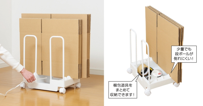ダンボールと梱包道具をまとめて収納できる『ダンボールストッカー』