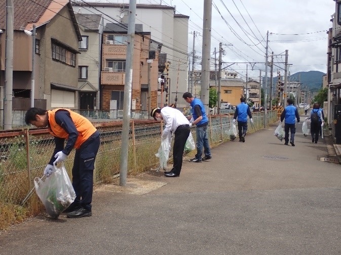 ▼前回5月22日に実施した「第1回えいでん沿線美化活動のようす」(叡山電鉄社員で実施)