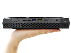 コンパクトなサイズながら、映像出力端子はHDMI(2.0a)×2ポート、Mini DisplayPort1.2×2ポート、Thunderbolt(TM) 3×2ポートの計6ポートを搭載しており、非常に充実しています。さらに本体前面にはVRヘッドマウントディスプレイに対応する接続ポートを集約しているので、VR環境に最適な構成となっています。