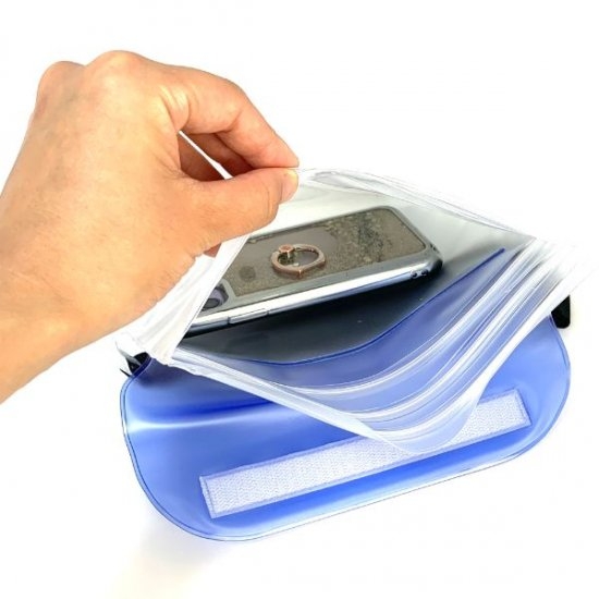 こちらも、防水素材のポーチです。スマホにピッタリなサイズで、プールサイドやキャンプ場などで便利です。
