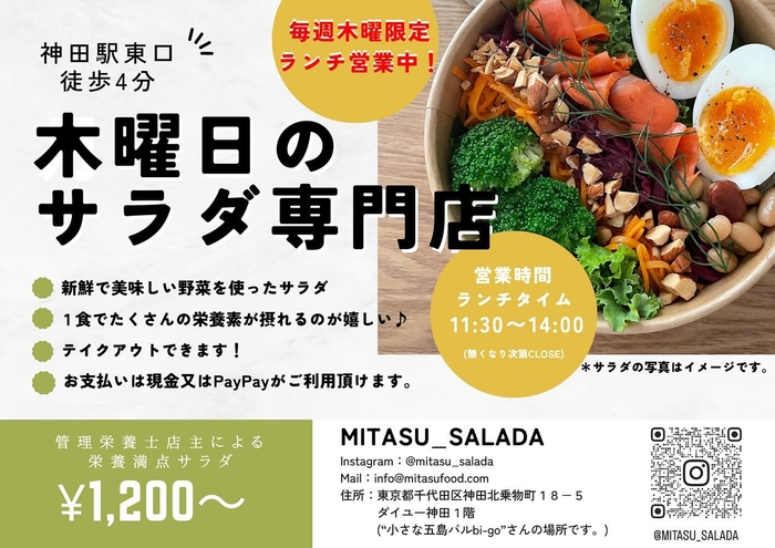 神田【1食でたくさんの栄養が取れるサラダボウル】木曜日限定「ミタスサラダ」が移転オープン