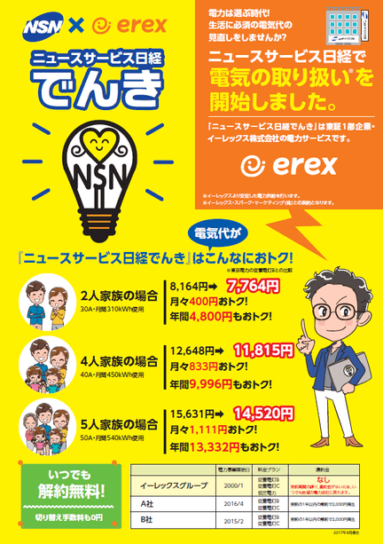 イーレックス・スパーク・マーケティング株式会社(米国ナスダック上場スパークエナジー社との合弁会社、以下 ESM)は、2017年10月1日より日本経済新聞販売協同組合と、「ニュースサービス日経でんき」の販売を開始いたしました。