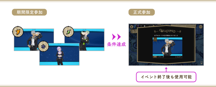 以下条件を達成すると、正式参加となり対象のカードはイベント終了後も所持カードに残り続けます。