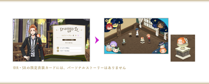 本召喚で提供される限定衣装カードは、条件を満たすことでゲストルームに設置可能な限定家具を作成できるようになります。