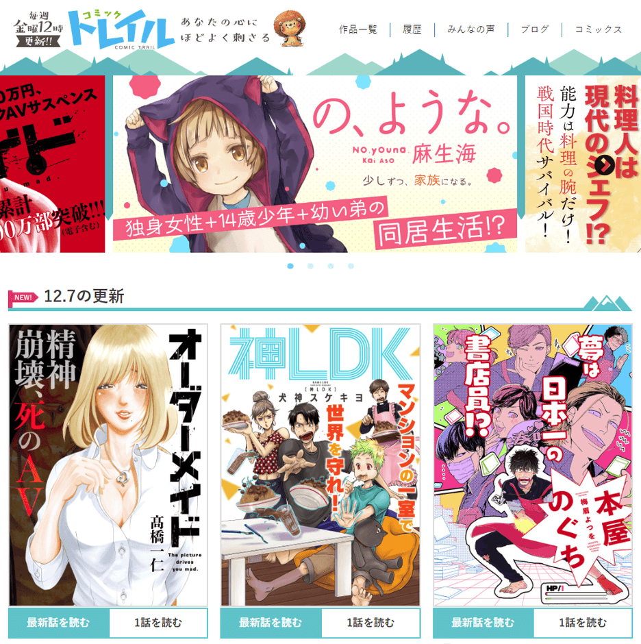 無料webマンガサイト「コミックトレイル」 12/7(金)オープン!
