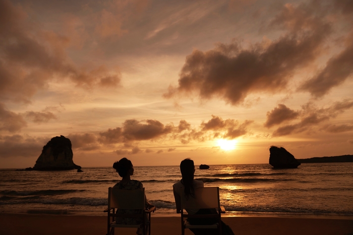 ホテル目の前の月ヶ浜に、絶景の夕陽、夕焼けをゆっくりと楽しめる特等席を用意します。また、スパークリングワインやおつまみを用意。海風を感じながら、波の音を聴き、のんびりと心地よい時間が過ごせます。
