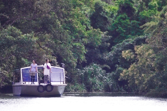 遊覧船に乗り、マングローブ群落が広がる浦内川を進みます。マングローブの群落を抜けるとヤシやシダが広がる亜熱帯のジャングルへと景観が変わり、変化も面白い場所です。木漏れ日が差すと川が光り、風が吹くと木々が優しく揺れます。爽快な風を感じ、ダイナミックな環境の中で五感を使って、心落ち着くひと時を過ごせます。