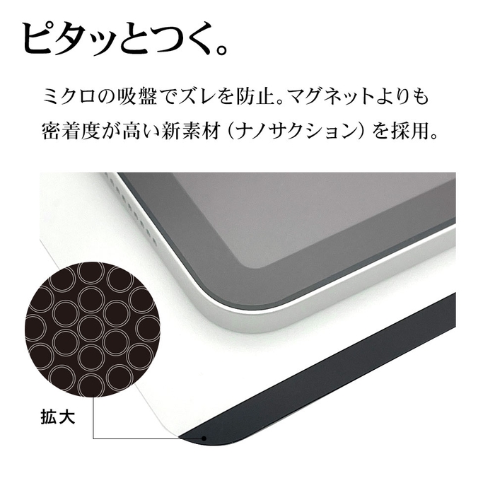 紙に近い感覚でペンが走る、描き心地にこだわったナノサクション吸着の着脱式のフィルムです。