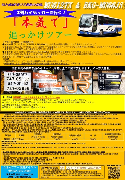 ジェイアール東海バスが開催するバスツアー「V8と直6が奏でる最後の共演。MU612TX&BKG-MU66JS」(2023年3月18日(土)・19日(日))ですが、大変多くのお申し込みをいただきました。