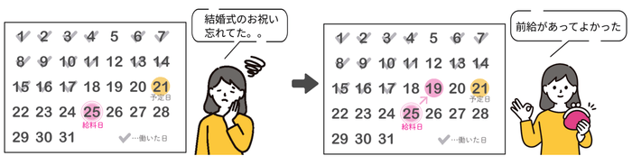 従業員自身が申し込みすることで、給料の一部を”働いた範囲内”で、”好きなタイミング”で受け取ることが可能です。