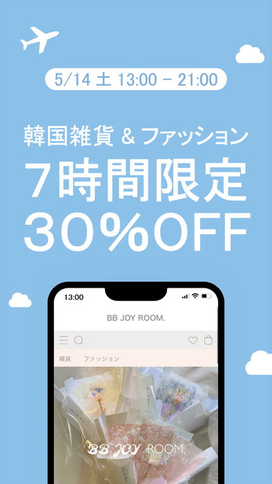 BB JOY ROOM.では 5月14日(土)7時間限定で全商品30%OFFイベント開催!