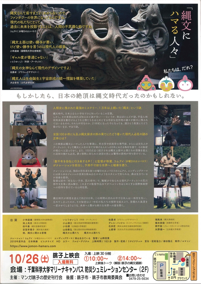 縄文時代に栄えた千葉県銚子市の余山貝塚をテーマに漫画制作を目指す「マンガ銚子の歴史刊行会」が2019年10月26日(土)、千葉科学大学(同市潮見町)のマリーナキャンパスで、山岡信貴監督の人気映画「縄文にハマる人々」を無料上映することになりました。