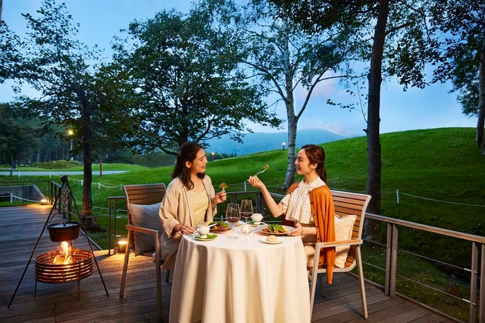 当リゾートが位置する占冠(しむかっぷ)村は、東京都23区と同じ総面積ですが、その94%が山林という自然豊かな場所です(*2)。手つかずの大自然が残るこの場所には、春になると、「ふきのとう」「タラの芽」「うど」など、あちらこちらで山菜が芽吹きます。ミネラルを多く含んだ土壌や鵡川(むかわ)の源流があり、山菜が育ちやすい環境が整っていると言われ、占冠村の特産品といえば山菜の加工品であるほどです。このような自然豊かな場所で過ごす心地よさと、旬を迎える山菜を味わってほしいという思いから、山菜をテーマにしたディナーを提供することに至りました。