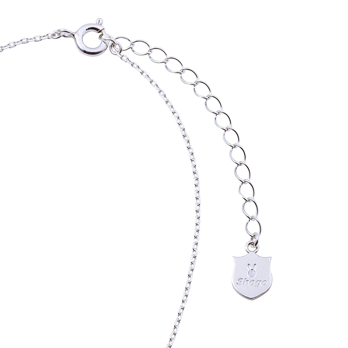 バータイプのトップの表面には、あまりのコスチュームからリボンとうさぎの耳を取り込みカラーストーンをセット。裏面にはあまりの口癖、「Amattemasu」の刻印を施しました。