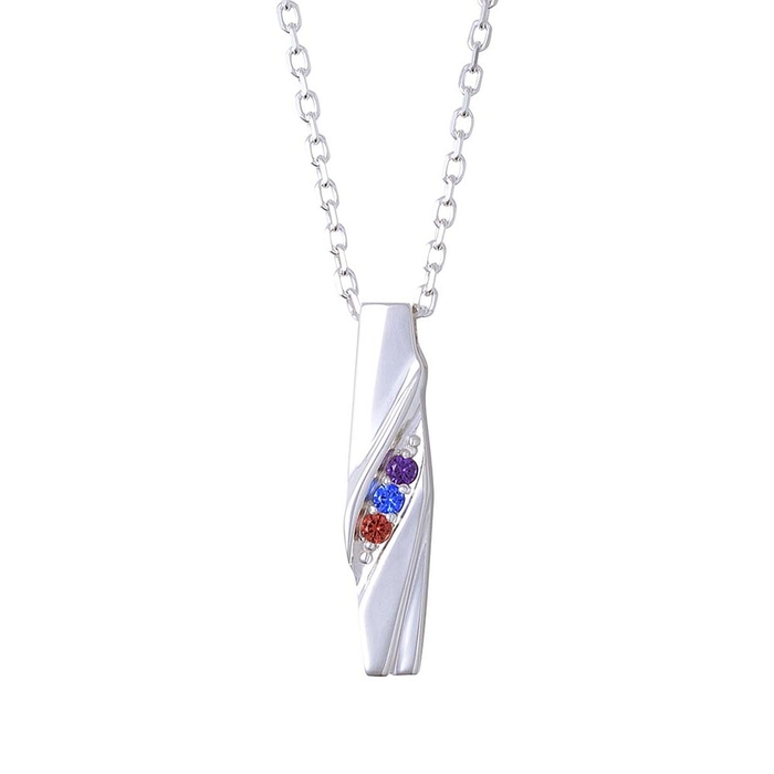 シンプルなトップの表面には男子アイドルユニット「WITH」のカラーストーン3石をセットし、裏面には、「IIZE!」を刻印しました。エンドチャームには名前と月アイコンが刻印されています。