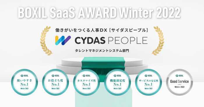 CYDAS PEOPLEが「BOXIL SaaS AWARD Winter 2022」タレントマネジメントシステム部門で「Good Service」ほか5つのNo.1に選出