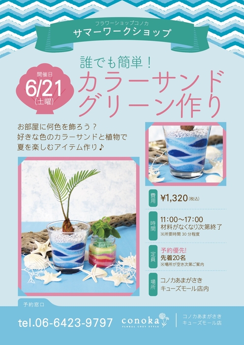 【コノカあまがさきキューズモール店限定】カラーサンドグリーン作り コノカのサマーワークショップ