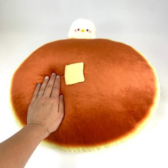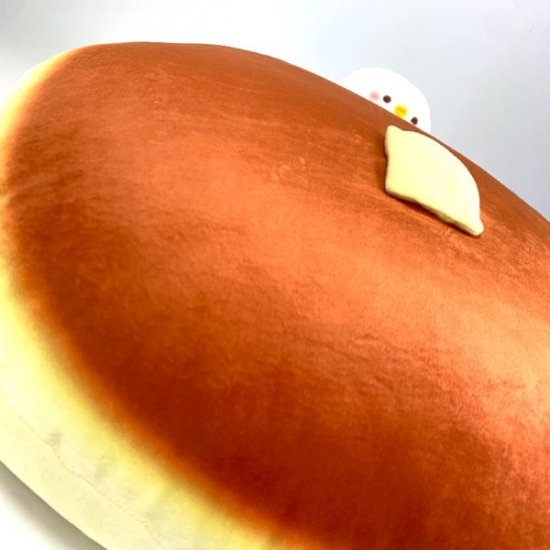 これは購入せずにはいられない!?思わずかぶりつきたくなる”ピスケ×スフレパンケーキ”のコラボクッション。このボリュームを見て♪枕にしたいくらいの分厚さなの。あ~お腹空いたっ!