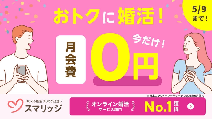 後悔ない婚活を。スマリッジで「婚活始めるならGW!月会費無料キャンペーン」が本日からスタート!